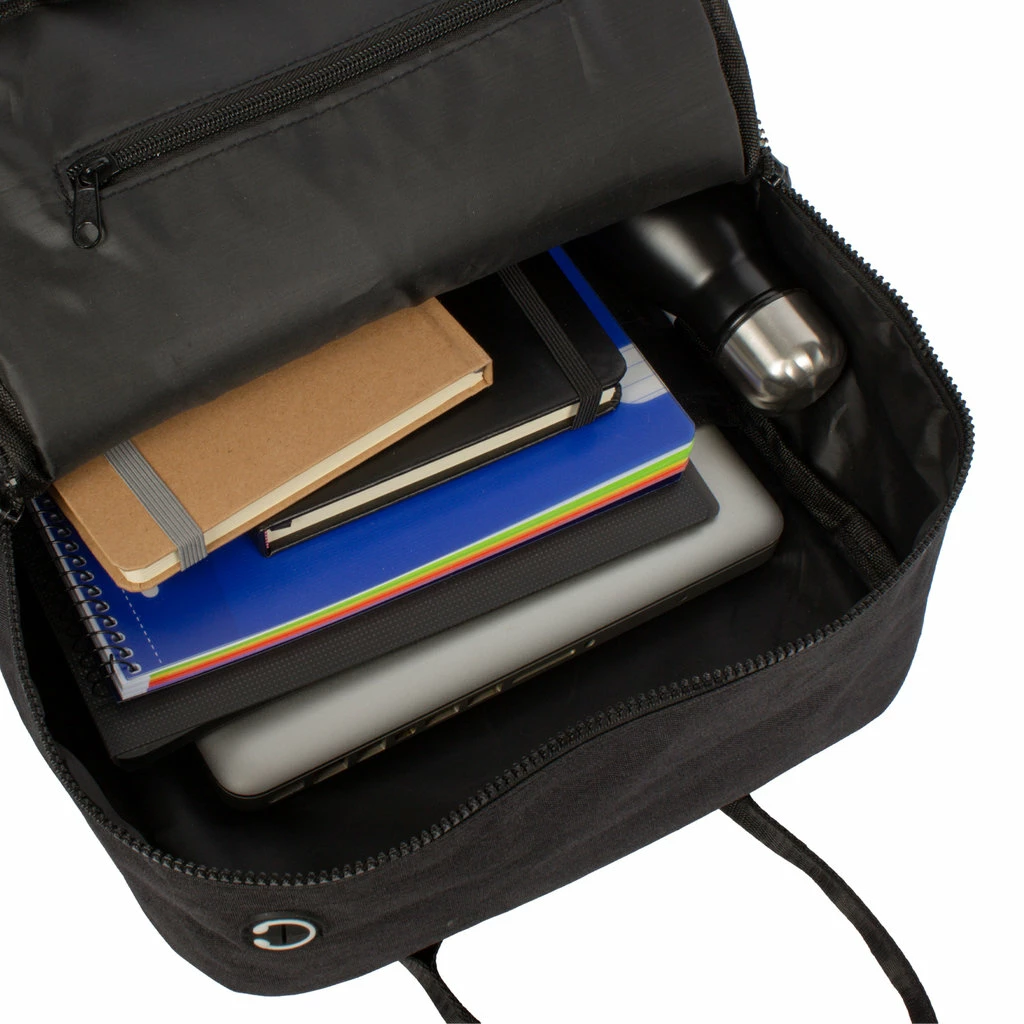 - Ruimte voor laptop, schoolboeken en A4-mappen