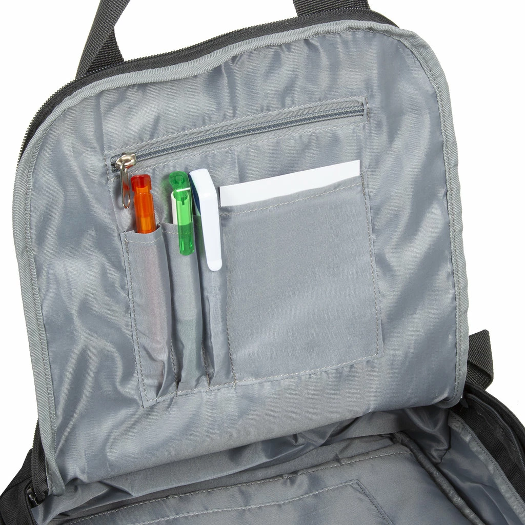 Geen grote, zware rugzak op je rug maar een super handig, klein rugzakje! Deze rugzak heeft een klein laptopvakje en vakjes voor kleine spulletjes. Kortom alles wat een grote rugzak heeft maar dan net iets kleiner. Als je niet veel spullen mee hoeft te nemen is deze tas dus ideaal. Doordat er 2 handvaten bovenaan de tas zitten kan je deze ook gemakkelijk in je handen dragen.