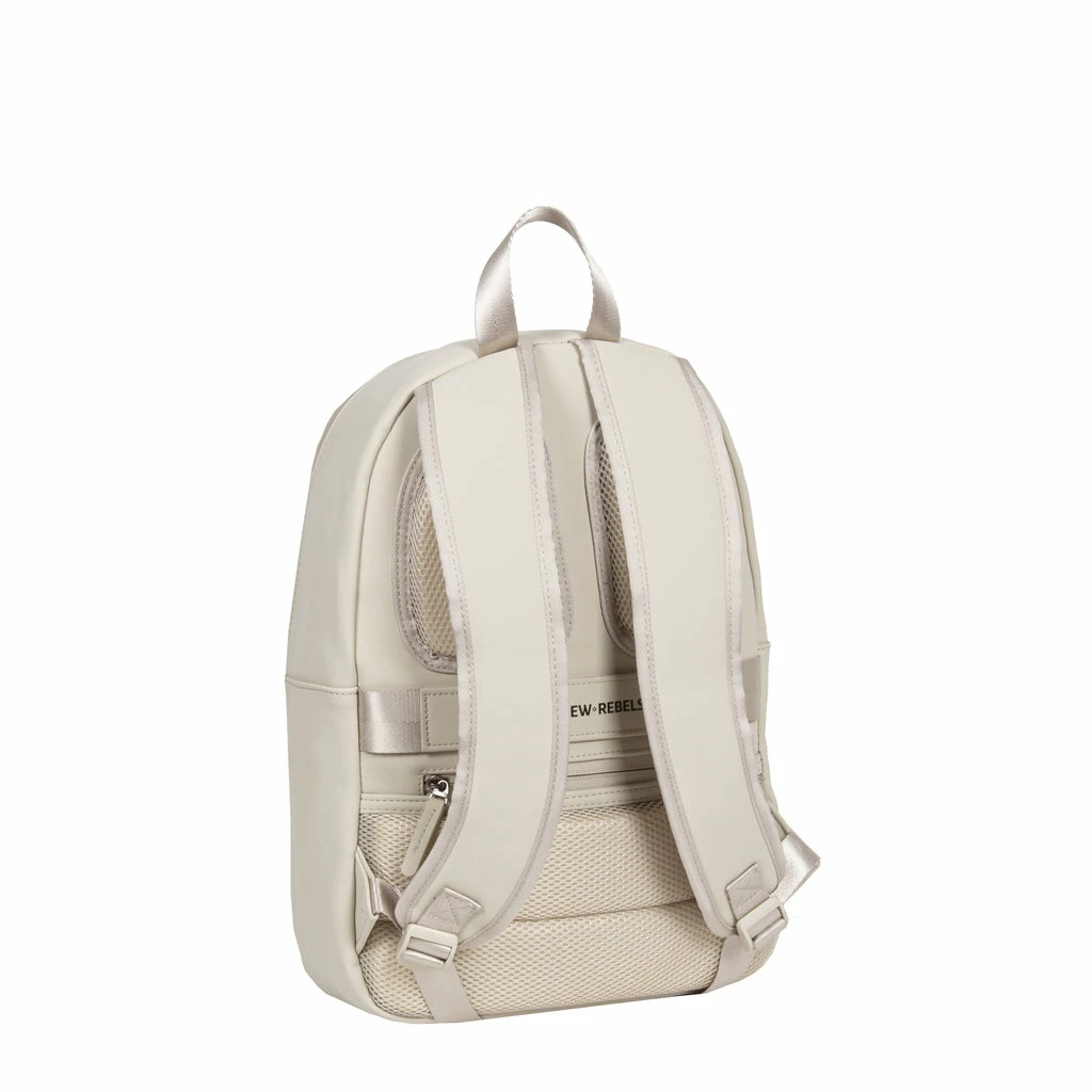 Deze waterafstotende rugzak uit de Harper serie van New Rebels. De tas is gemaakt van waterproof PU materiaal wat de tas waterbestendig maakt ook ideaal voor de wintersport of als laptoprugzak voor op de fiets. De rugzak beschikt over een ruim hoofdvak die afsluitbaar is met een waterkerende ritssluiting. In het hoofdvak met ritssluiting zit een ritsvak, een telefoonvak, een insteekvak en een laptopvak voor een 13″ laptop. Op de voorzijde van de tas zitten een horizontaal ritsvak en een verticaal ritsvak. In het horizontale ritsvak bevinden zich twee insteekvakken, twee pennenvakken en een ritsvak. Aan de zijkanten bevinden zich twee inteekvakken waar bijvoorbeeld een waterflesje en/of blikje in passen. De tas beschikt over 2 verstelbare rugbanden, hierdoor kan u de tas altijd op de gewenste lengte dragen. Het rugpaneel en de schouderbanden zijn gewatteerd, hierdoor draagt je de tas zeer comfortabel.