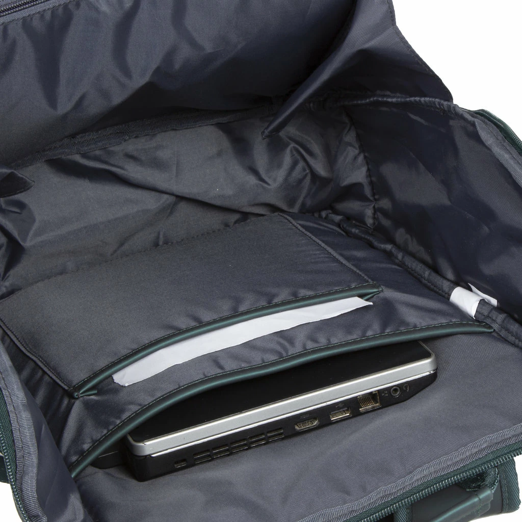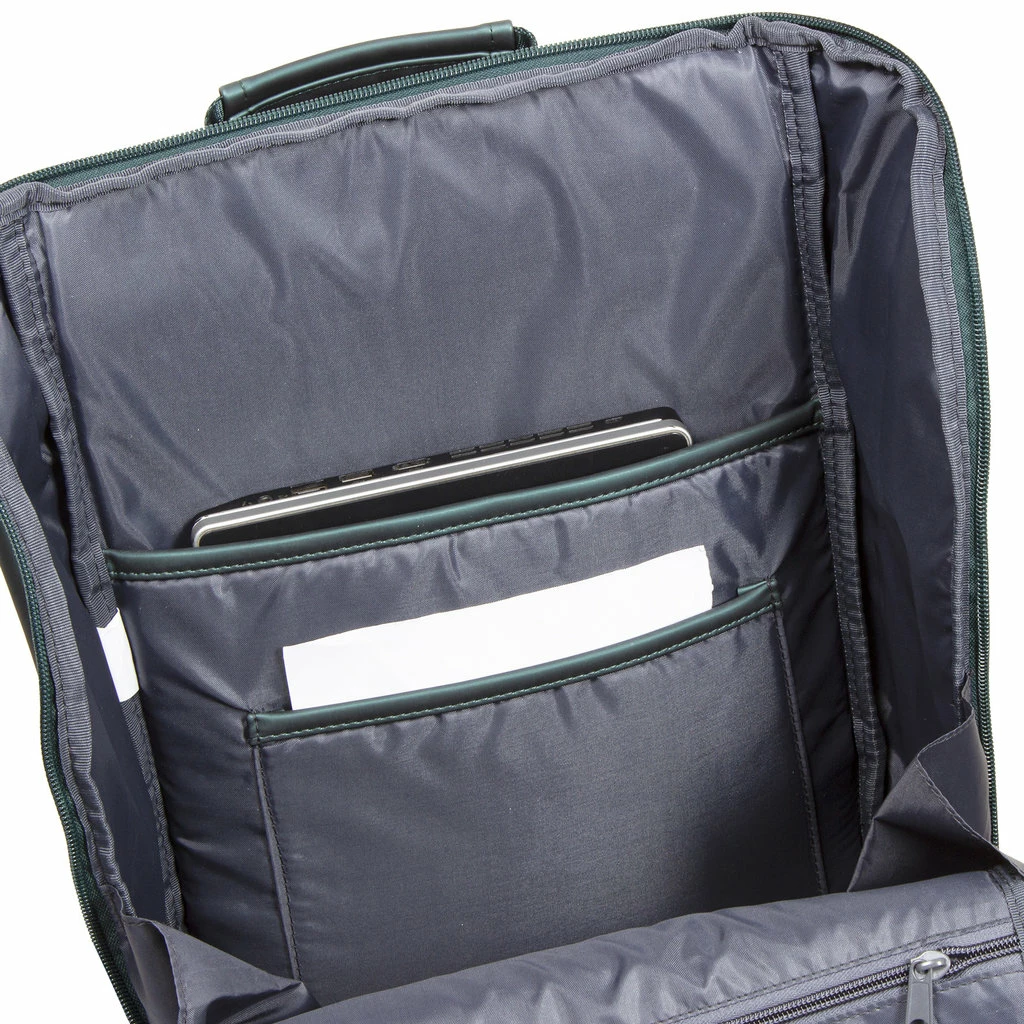 Deze waterafstotende rugzak uit de Harper serie van New Rebels. De tas is gemaakt van waterproof PU materiaal wat de tas waterbestendig maakt ook ideaal voor de wintersport of als laptoprugzak voor op de fiets. De rugzak beschikt over een ruim hoofdvak die afsluitbaar is met een waterkerende ritssluiting. In het hoofdvak met ritssluiting zit een ritsvak, een telefoonvak, een insteekvak en een laptopvak voor een 15,6″ laptop. Op de voorzijde van de tas zitten een horizontaal ritsvak en een verticaal ritsvak. In het horizontale ritsvak bevinden zich twee insteekvakken, twee pennenvakken en een ritsvak. De tas beschikt over 2 verstelbare rugbanden, hierdoor kan u de tas altijd op de gewenste lengte dragen. Het rugpaneel en de schouderbanden zijn gewatteerd, hierdoor draagt je de tas zeer comfortabel. Kofferriem om op een koffer/trolley handvat te plaatsen.