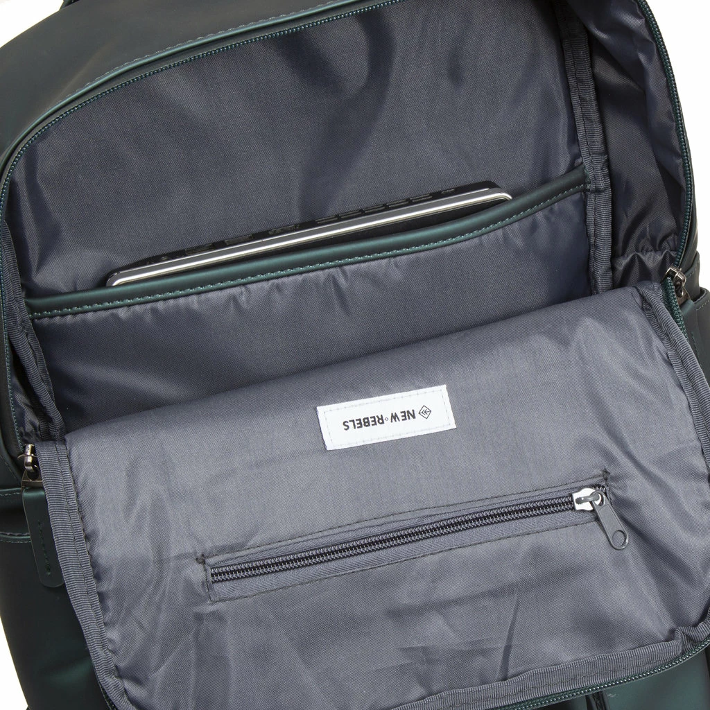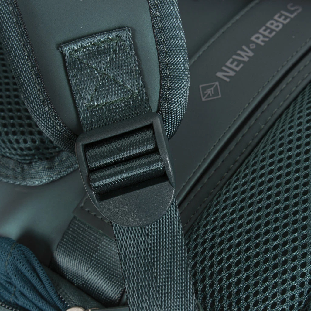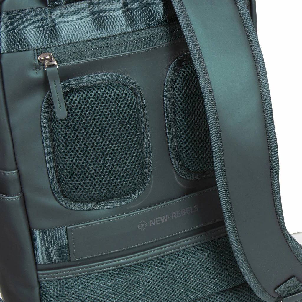 Deze rugzak van New Rebels uit de Harper serie is waterafstotend. De tas is gemaakt van waterproof PU materiaal ideaal voor op wintersport of op de fiets doordat de tas waterbestendig is. De rugzak heeft een ruim hoofdvak met een waterdichte ritssluiting. In het hoofdvak bevindt zich een rits vak en een laptopvak voor een 14,1” laptop. De voor- en achterzijde van de tas heeft een horizontaal rits vak. Aan beide zijkanten bevindt zich een insteek vak voor een smalle waterfles (dopper) of een paraplu. Twee verstelbare gewatteerde rugbanden en het gewatteerd rugpaneel maken deze tas comfortabel om te dragen.