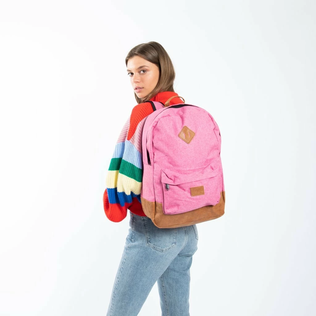 Met een rugzak draag je gemakkelijk veel spullen op een comfortabele manier. Handig bij het wandelen, fietsen, citytrip, een reis en natuurlijk voor school of college. Een goede schooltas is essentieel voor tieners en studenten. Behalve dat deze sterk moet zijn voor alle boeken, willen ze vaak ook een hip design. Deze stevige rugtas van de Heaven serie is er in trendy kleuren en is een populair model onder de jeugd. Het ruime hoofdvak met ritssluiting beschikt over een insteekvak (25×26 cm) voor bijvoorbeeld laptop/tablet, notitieblok en vele andere items. Op de voorzijde van de tas zit een extra compartiment met rits, waarin je eenvoudig kleinere spullen kunt bewaren en waar je snel bij kunt. Extra draagcomfort is gecreëerd door de verstelbare en gewatteerde schouderbanden en het eveneens gevoerde rugpaneel. Een stevig handvat zorgt ervoor dat de tas makkelijk op te pakken en op te hangen is. De extra stevige onderkant beschermt je spullen beter wanneer je de tas neerzet. Door de leatherlook accenten krijgt deze tijdloze rugtas een stoere look.