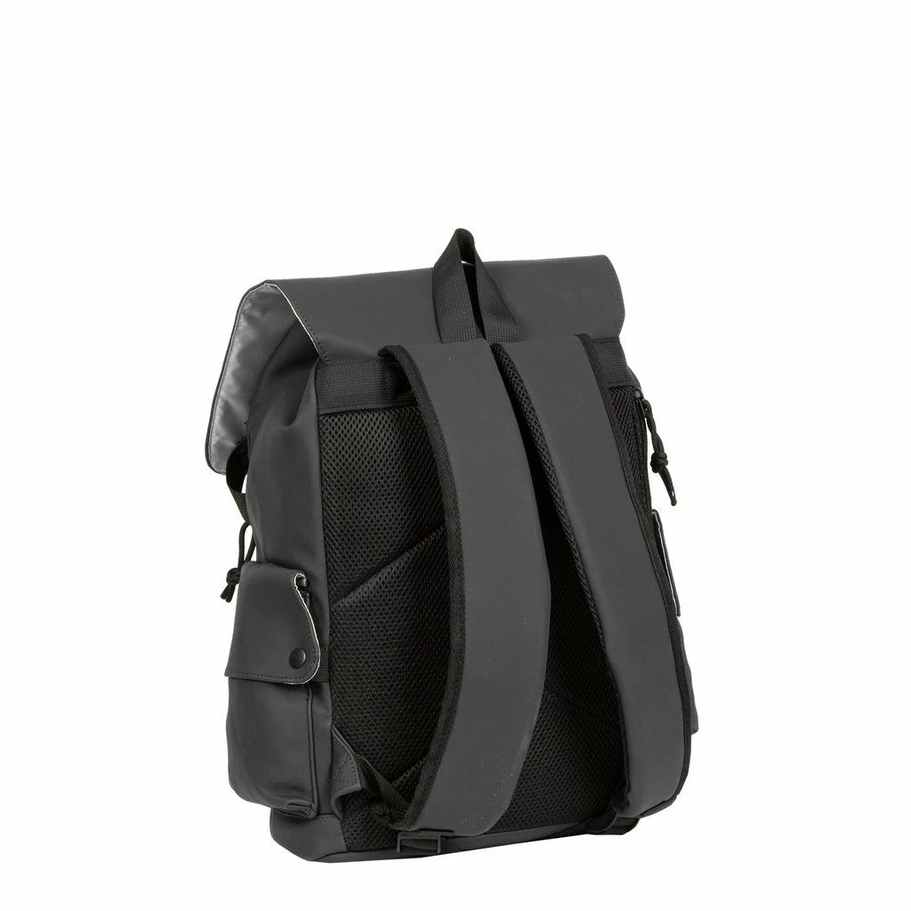 Lunchpakketten voor het hele gezin passen makkelijk in deze ruime rugtas met vele opbergmogelijkheden. Dus handig voor een dagje eropuit of voor naar school of college. Het rugpaneel en de verstelbare schouderbanden zijn gevoerd en ademend. Ideaal wanneer je kilometers moet maken met deze tas op je rug. De tas draagt hierdoor soepeler en zorgt ervoor dat je niet snel gaat zweten. Het hoofdcompartiment sluit makkelijk met een trekkoord en beschikt over een gewatteerd laptopvak (27x27cm) afsluitbaar met klittenband. In de gladde zilverkleurige voering bevindt zich ook nog een ritsvakje voor kleine spullen. Op de voorkant van de tas zit een insteekvak (4 cm diep) met ritsvak erop. Hier overheen valt de omslag die je afsluit met twee drukknopen. Op de zijkanten van de tas is gedacht aan twee vakken voor bijvoorbeeld een kleine paraplu, beker of telefoon. De verstevigde bodem biedt extra bescherming aan je spullen en zorgt ervoor dat de tas makkelijk is neer te zetten. Het waterafstotende materiaal is makkelijk schoon te maken en maakt de tas bestand tegen een kleine regenbui.