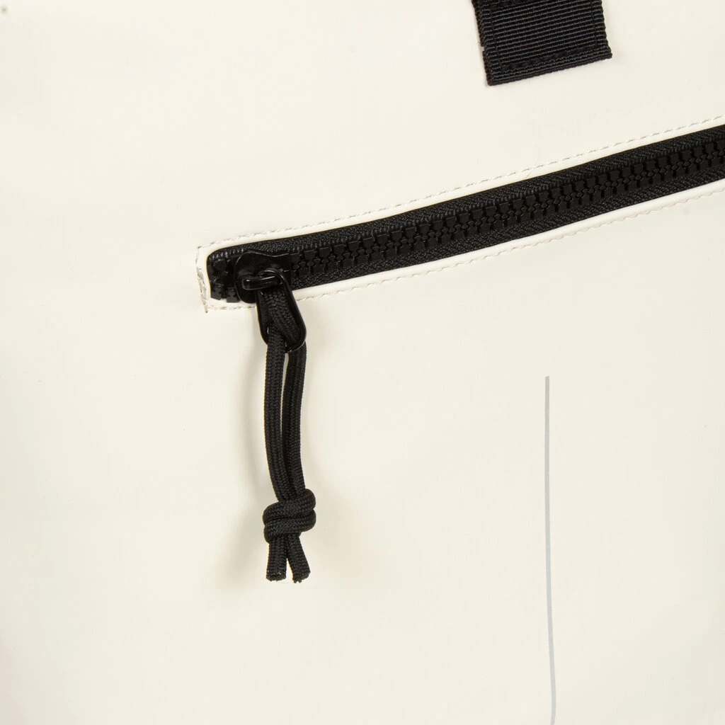 - Een hoofdvak met ritssluiting (15L bij volledig uitrollen)
