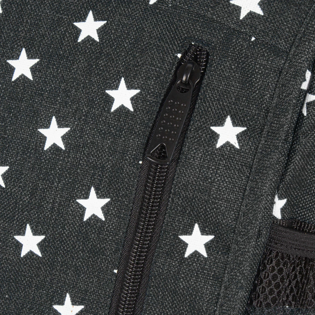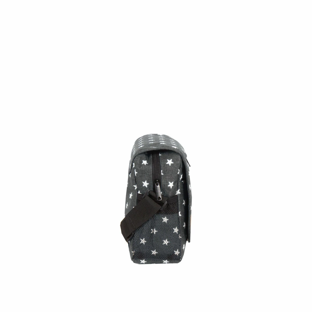 Deze vrolijke schoudertas met sterren patroon is perfect om crossbody te dragen. Een A5 formaat tas die ook erg geliefd is onder de kinderen. Het hoofdvak is afsluitbaar met een ritssluiting en een handige overslag met klittenband. In het hoofdvak zit een klein ritsvak, waar je kleinere spullen veilig kunt opbergen. Aan de voorzijde, onder de overslag, zit een insteekvak handig voor papieren. Op de achterzijde bevindt zich een ritsvak en op de voorzijde zitten ook nog twee ritsvakken, waarvan eentje verticaal. De zijkanten zijn voorzien van mesh vakken, perfect voor een bidon of beker. Een casual bag met veel opbergmogelijkheden in verschillende hippe kleuren te verkrijgen.