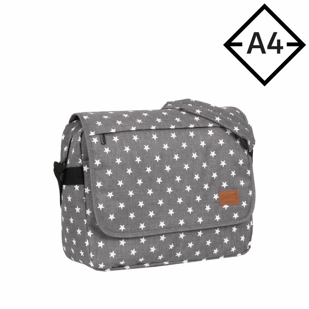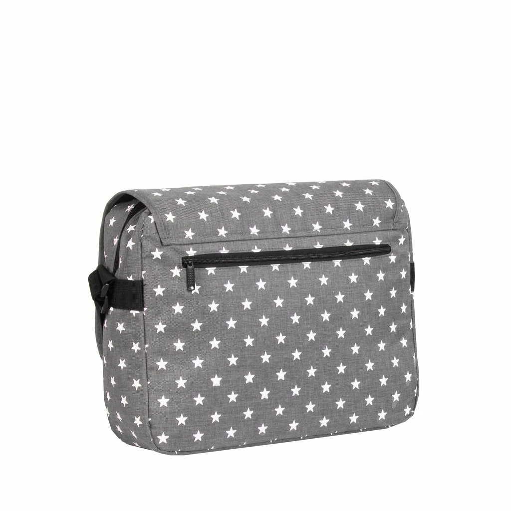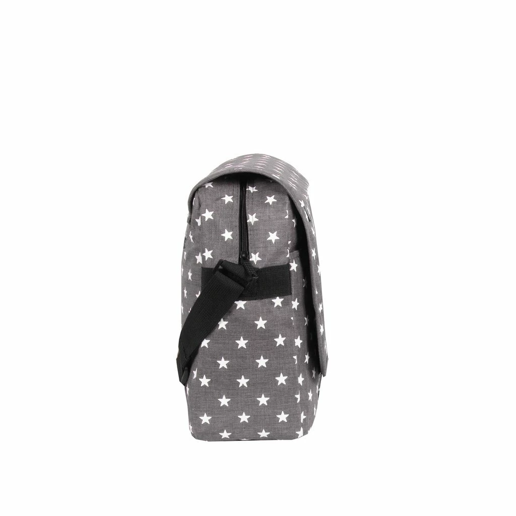 Deze laptoptas is een degelijke, functionele tas met een sportieve look. Een ruime, toch lichtgewicht tas met een speciaal gevoerd opbergvak voor je laptop of tablet (24x38cm). De tas heeft een schouderband die lang genoeg is om ook crossbody gedragen te kunnen worden. Op het draagdeel van deze schouderband zit een gewatteerd vlak, voor extra comfort. Het ruime hoofdvak is afsluitbaar met een ritssluiting en een handige overslag met klittenband. In de overslag zit een extra ritsvak voor spullen waar je snel bij kunt. Aan de voorzijde, onder de overslag, zit een insteekvak handig voor papierwerk of telefoon. Op de achterzijde bevindt zich nog een ruim ritsvak. Een basic en classic item uitgevoerd in een vrolijk sterren patroon.