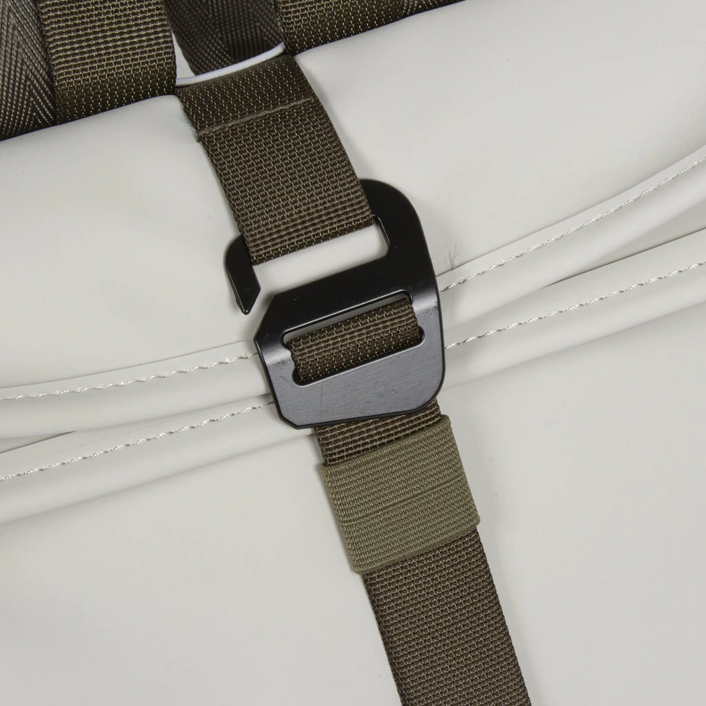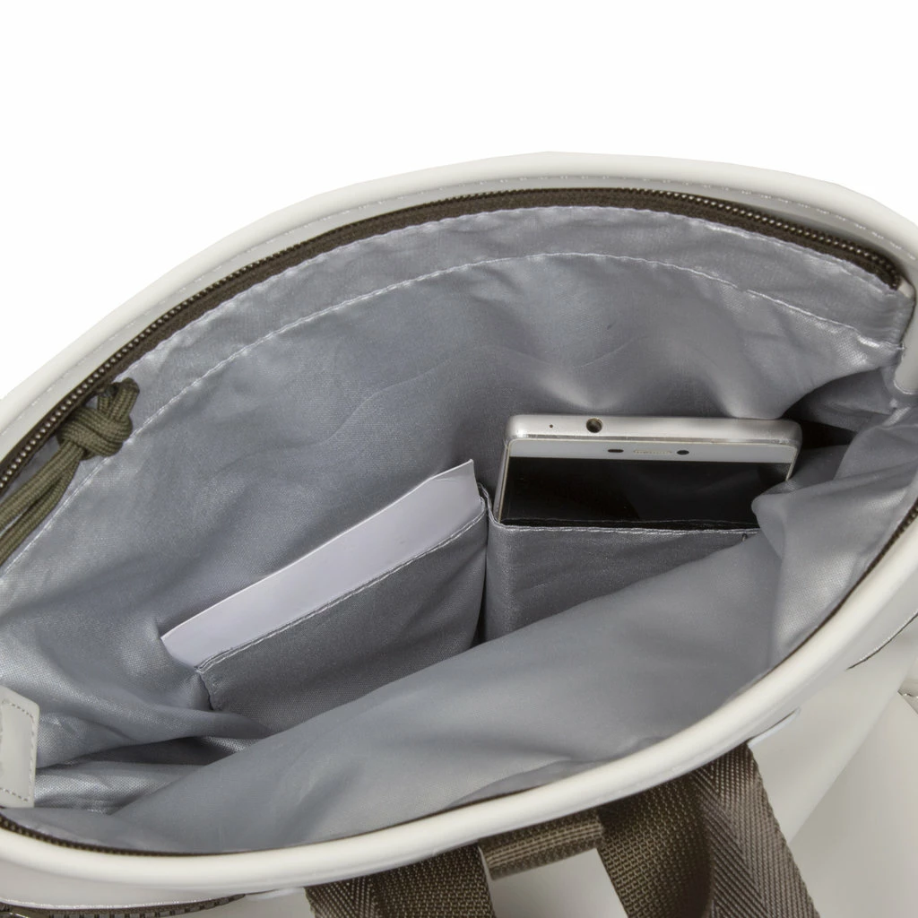 Deze trendy waterafstotende rugtas in leuke kleuren draagt comfortabel door het lichtgewicht en de gewatteerde schouderbanden. Toch behoudt deze rugzak zijn charme door de fijne vormgeving. Het hoofdvak is eenvoudig te vergroten of verkleinen door het oprol gedeelte aan de bovenkant. Hierdoor kun je tot 10 cm meer ruimte creëren. Het hoofdvak is afsluitbaar met een stevige rits en een gespsluiting die als een strook, met een contrasterende kleur, doorloopt in het design. In het zilverkleurige hoofdvak zitten twee insteekvakjes en een ritsvakje voor bijvoorbeeld je telefoon. Op de voorkant en achterkant van de rugzak zit ook een extra ritsvak, handig voor kleine spullen waar je snel bij moet kunnen. Het stevige handvat zorgt ervoor dat de tas eenvoudig op te pakken en op te hangen is.