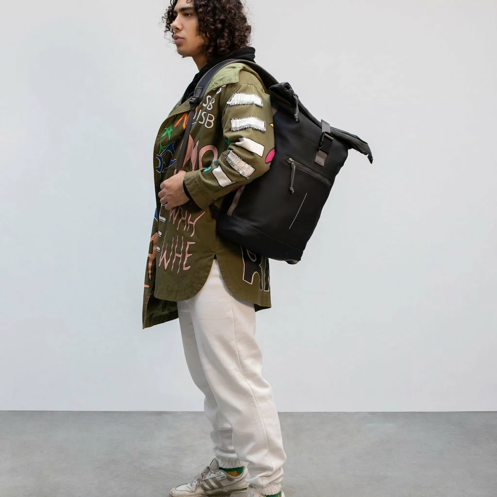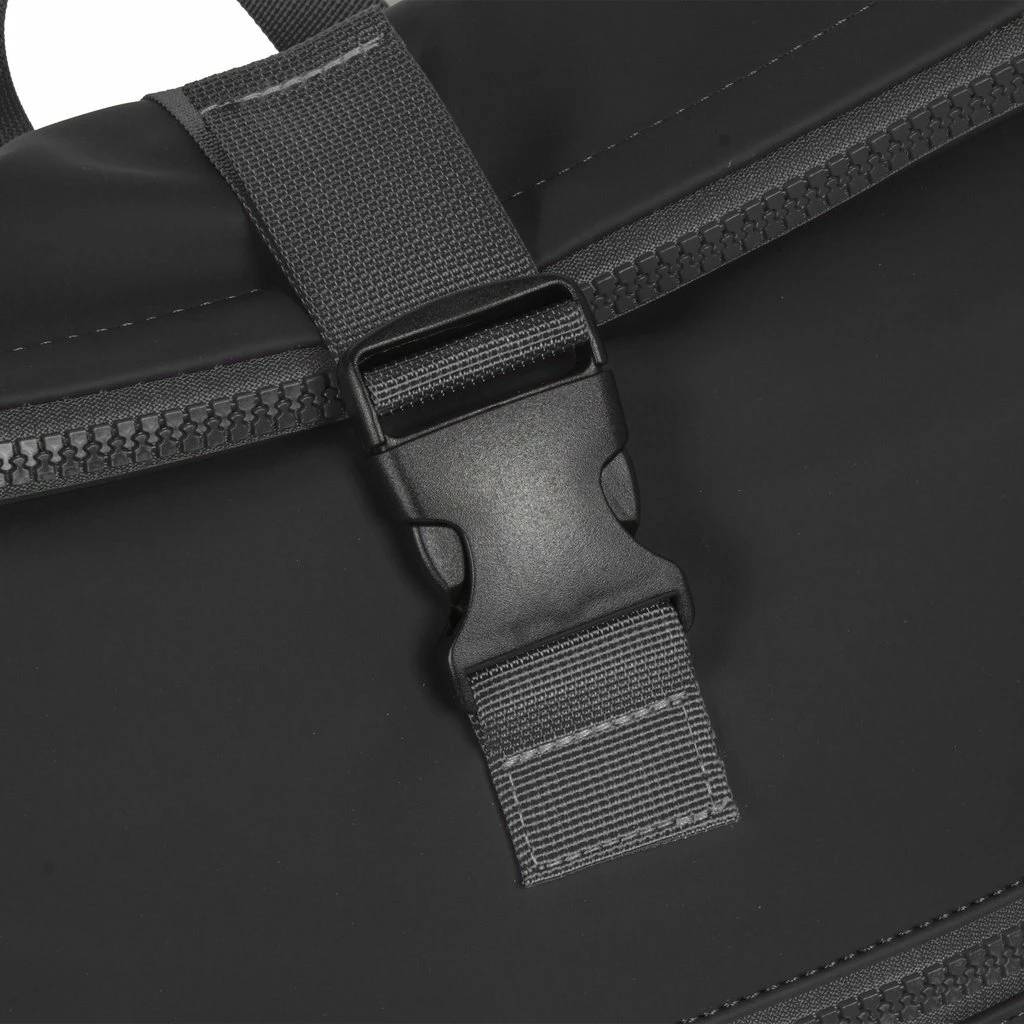 Deze trendy waterafstotende rugtas ziet er niet alleen stoer uit, maar heeft ontzettend veel opbergruimte en draagt super comfortabel. Comfortabel door het lichtgewicht en het gewatteerde rugvlak en de gewatteerde verstelbare schouderbanden. Veel opbergruimte door het ruime hoofdvak dat eenvoudig te vergroten of verkleinen is door het oprol gedeelte aan de bovenkant. Hierdoor kun je tot 10 cm meer ruimte creëren. Het hoofdvak is afsluitbaar met een stevige rits en een schuif/klik sluiting. In het hoofdvak zit een extra ritsvak en een gevoerd laptopvak (36×27 cm). Op de voorkant van de rugzak zit ook een extra ritsvak, handig voor kleine spullen waar je snel bij moet kunnen. Het stevige handvat zorgt ervoor dat de tas eenvoudig op te pakken en op te hangen is. Fashionable functioneel!