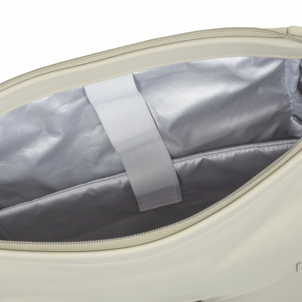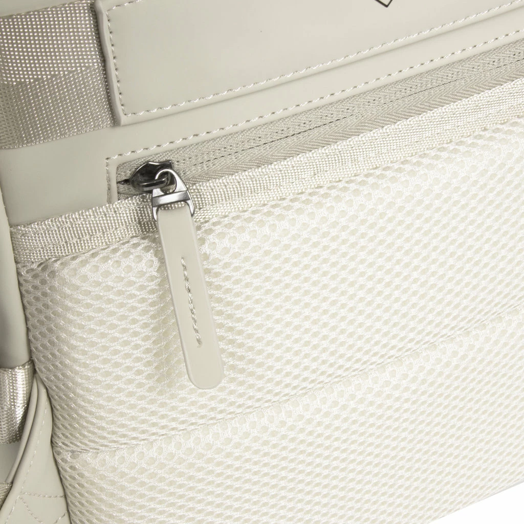 Door een band achterop het rugpaneel kan je de tas gemakkelijk vastzetten aan het uittrekbare handvat van je koffer (zonder dat de tas valt). Ideaal dus om mee te reizen!