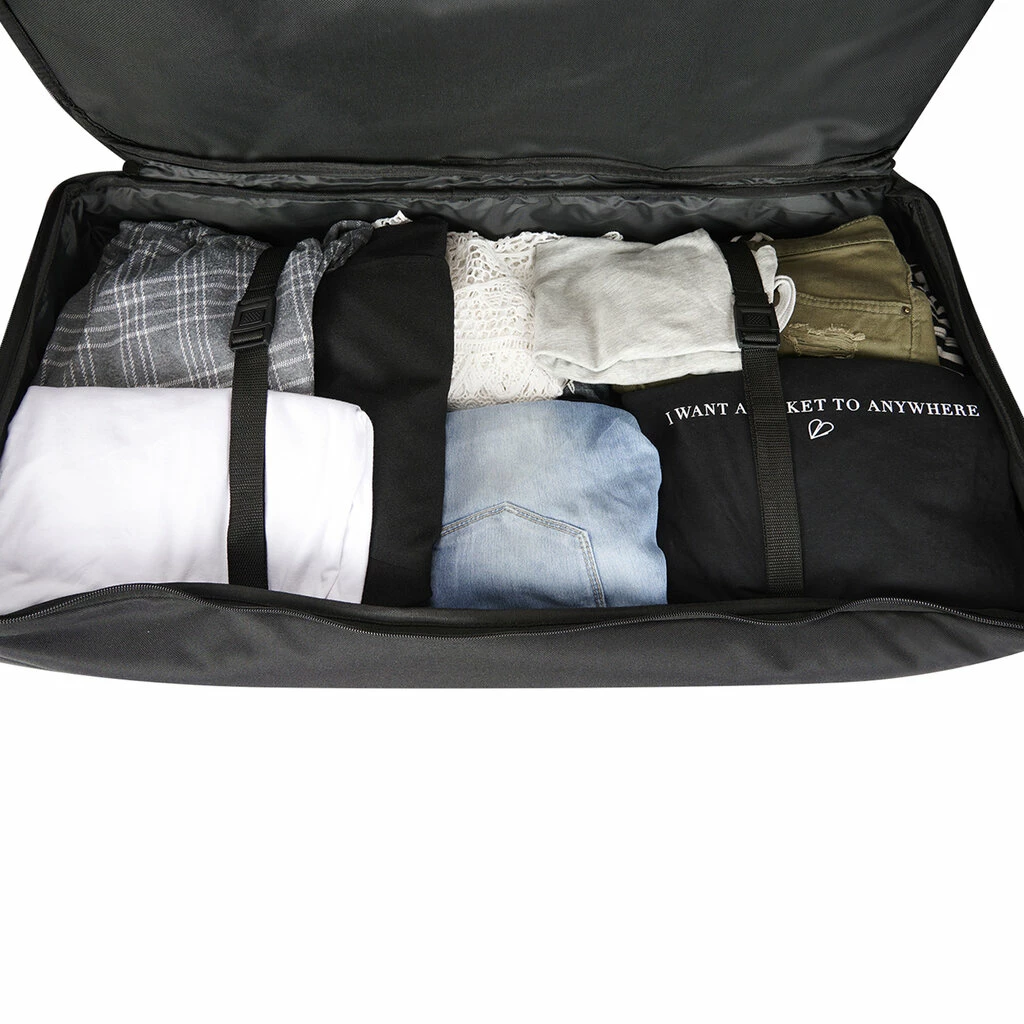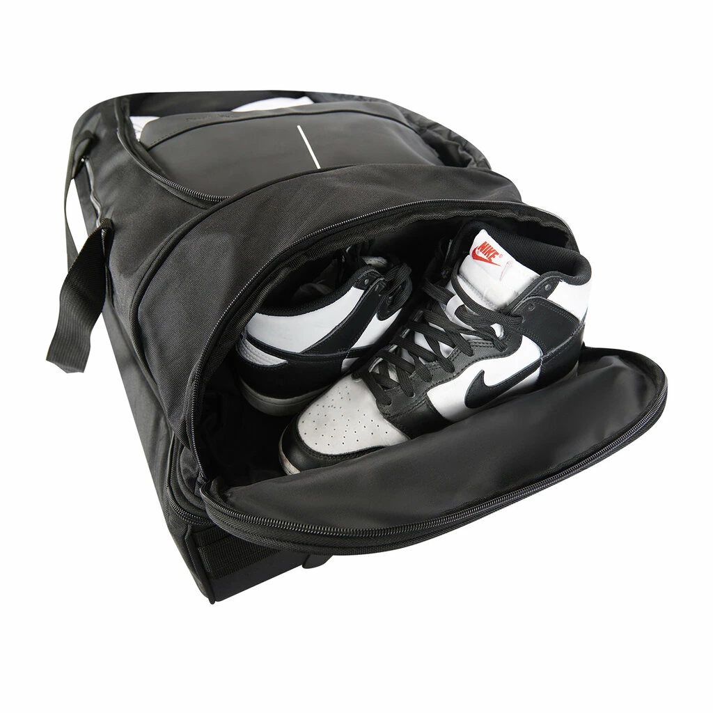 SEPARATE ITEMS – Scheid je schone en vuile was door gebruik te maken van het hoofdvak en het vak aan de onderkant van de grote tas. En maak je geen zorgen over je schoenen, want die passen in de vakken aan de zijkant van de reistas.